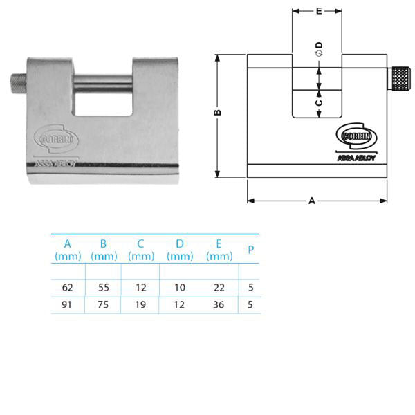 CORBIN LUCCHETTO CORAZZATO mm 62 SERRANDE KA PL211 CORBIN