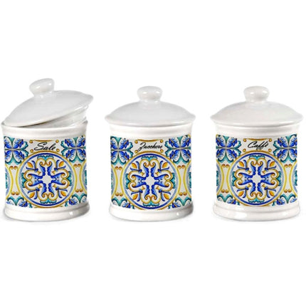 CeramicaTappo a pressione con pomoloScritte sale, zucchero e caffe'Decoro TerreDimensioni cm 11 h 15 Per saperne di più