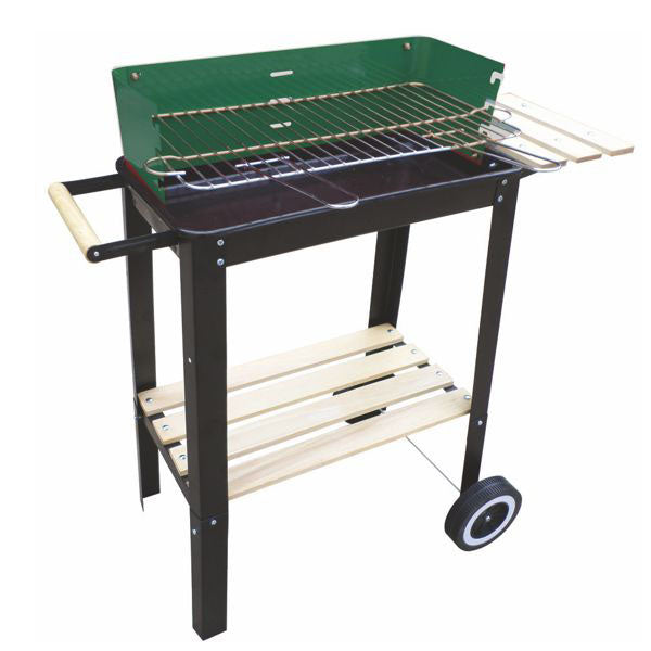 Braciere acciaio verniciato con fori areazioneReggibrace alluminato - Paravento acciaioGriglia cromata regolabile 3 posizioni2 ripiani legno - Ruote trasferimento Per saperne di più