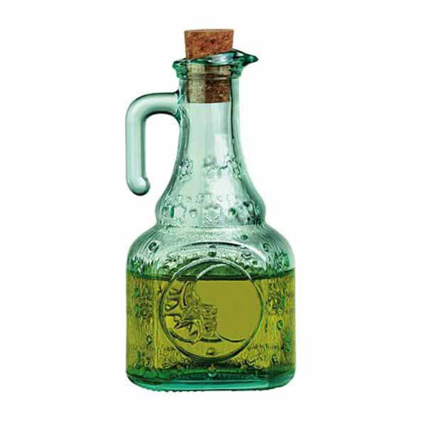 Vetro verde acqua decoratoAdatta per olio e acetoTappo sughero incluso Per saperne di più