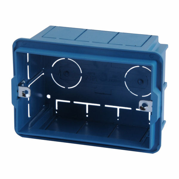 Scatola derivazione rettangolare da incasso IP40Tecnopolimero isolante autoestinguente blu2 inserti metallici - 3 postiInterasse fori mm 83Dimensioni interne mm 95x59... Per saperne di più
