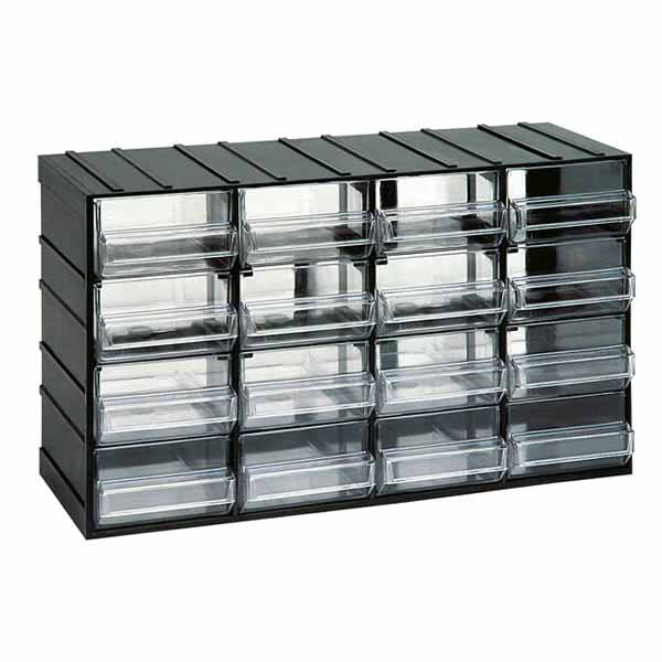 Serie 600Assemblabile ad incastro16 cassetti trasparenti con portaetichettaMisure blocco: mm 382x148 h 230Misure cassetti: mm 90x145 h 55 Per saperne di più