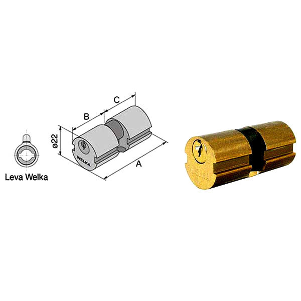 Cilindro infilare tondo ottoneLeva Welka centraleDiametro mm 22Per serrature 067 1233 chiavi Per saperne di più