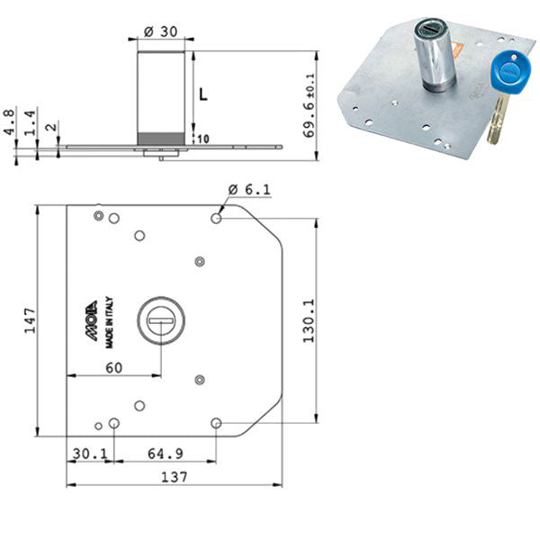 Cilindro pompa serrature JMLunghezza cilindro mm 60 diametro mm 30Chiave punzonataDotazione 3 chiavi + 1 cantiere testa plastica Per saperne di più