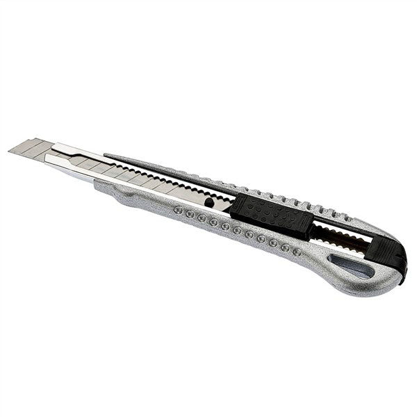 Corpo alluminio - Guida metalloLama retrattile a spezzare 12 elementiFermo di sicurezzaTrancia lame Per saperne di più