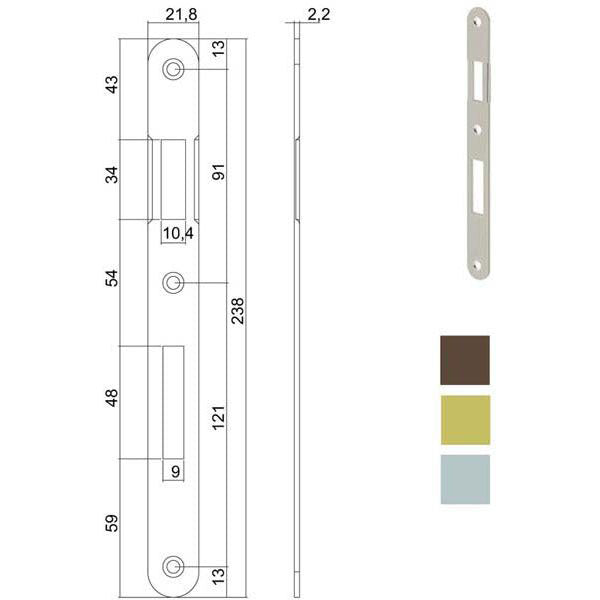 Adatto per serrature patent bordi tondi 591-595Interasse mm 90Dimensioni mm 22x238 spessore mm 2 Per saperne di più