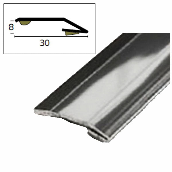 Passatoia pavimenti finaleAcciaio inox AISI 304Finitura lucidaFissaggio con adesivo preincollatoSezione mm 30x8 Per saperne di più