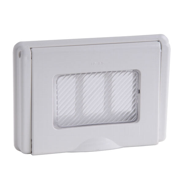 Placca stagna per cassetta esterna IP553 postiSportello a finestra con mollaDimensioni mm 122x83Colore bianco Per saperne di più