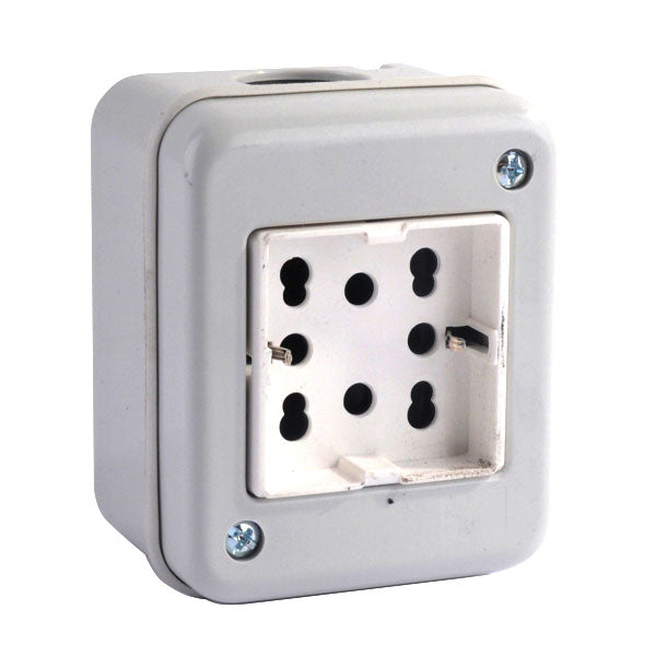 Modulo comando montato su custodiaInstallazione a pareteDoppia presa 2P+T + 1 SK 10/16A 250VColore grigioFrutto bianco compatibile magic Per saperne di più