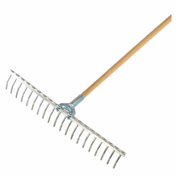 Alluminio finitura naturaleAttacco regolabileDenti tondiAdatto per fieno e tappeti erbosiManico legno cm 180 Per saperne di più