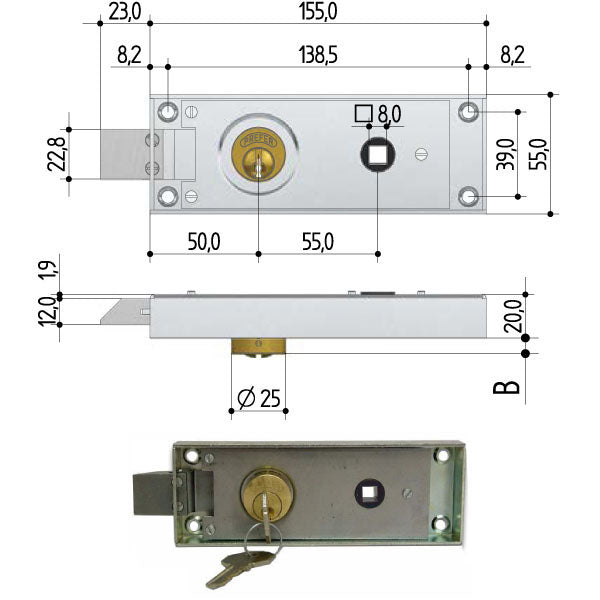 Serratura zincata applicare ferroCilindro interno - Catenaccio scroccoQuadro maniglia passante - Viti fissaggio Scatola 155x55Cilindro 6812 sporgenza mm 7Apertura sinistra... Per saperne di più