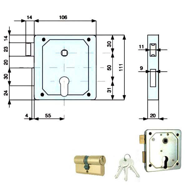 Serratura zincata applicare ferroScrocco reversibile Q8 - Catenaccio 2 mandateAmbidestraMisura scatola mm 106x111Misura frontale mm 20x111 - Entrata mm 55Cilindro... Per saperne di più