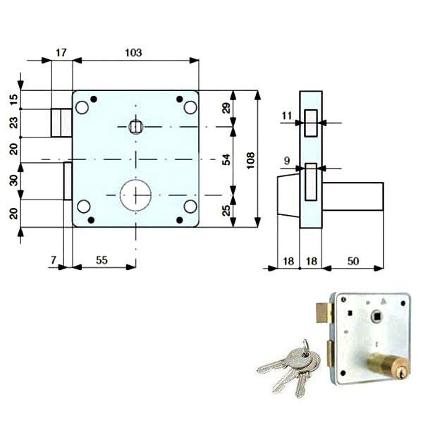 Serratura zincata applicare ferroScrocco reversibile Q8 - Catenaccio 2 mandateMisura scatola mm 103x108Misura frontale mm 18x108 - Entrata mm 55Cilindro... Per saperne di più