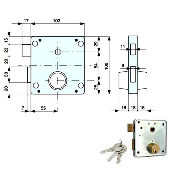 Serratura zincata applicare ferroScrocco reversibile Q8 - Catenaccio 2 mandateMisura scatola mm 103x108Misura frontale mm 18x108 - Entrata mm 55Cilindro... Per saperne di più