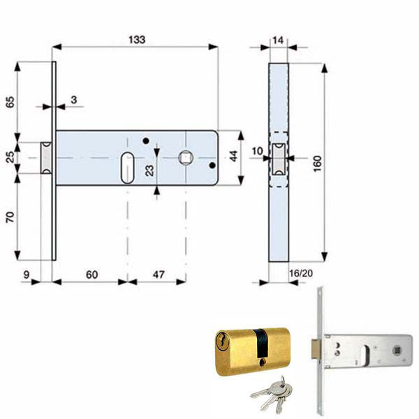 Serratura zincata infilare alluminio fasceScrocco catenaccio incorporato reversibile Q82 mandate - Misura scatola mm 133x44Misura frontale mm 16x160/20x160 - Entrata... Per saperne di più