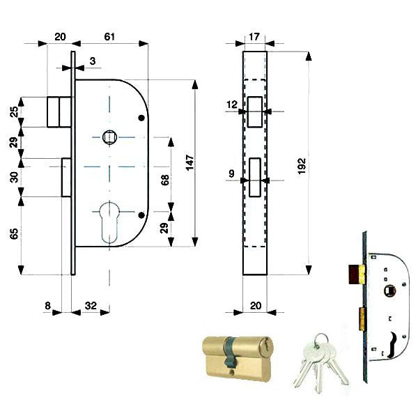 Serratura zincata infilare ferroScrocco reversibile Q8 - Catenaccio 2 mandateMisura scatola mm 68x147Misura frontale mm 20x192 - Entrata mm 32Cilindro... Per saperne di più