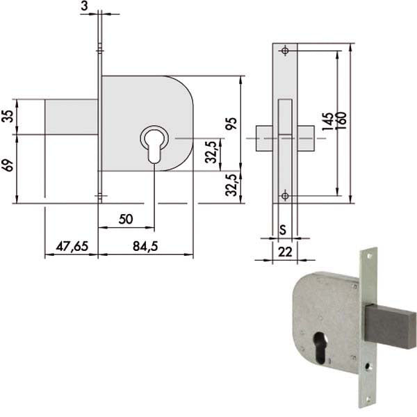 Serratura zincata infilare ferroScrocco con catenaccio incorporato 1 mandataAmbidestra Cilindro non incluso Scatola 95 - Frontale 22x160 Per saperne di più