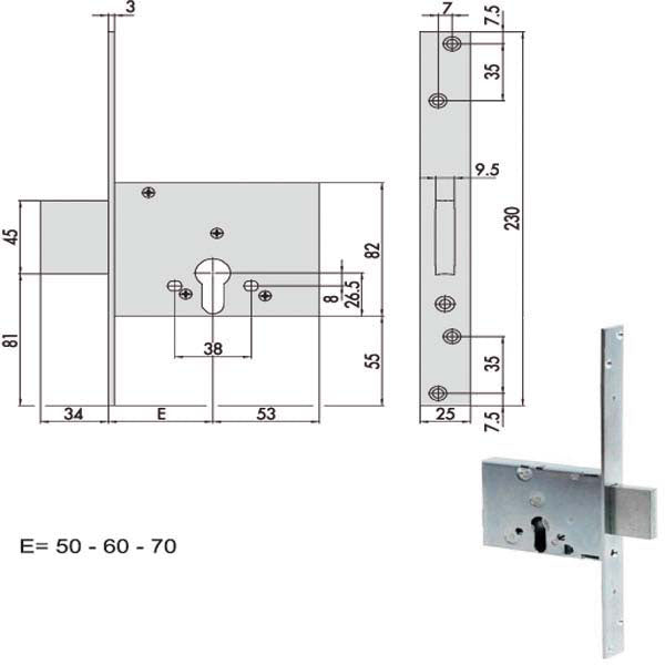 Serratura zincata infilare ferroCatenaccio acciaio zincato 3 mandatePredisposta protettore cilindroAmbidestraCilindro non incluso Scatola 82 - Frontale 25x230 Per saperne di più