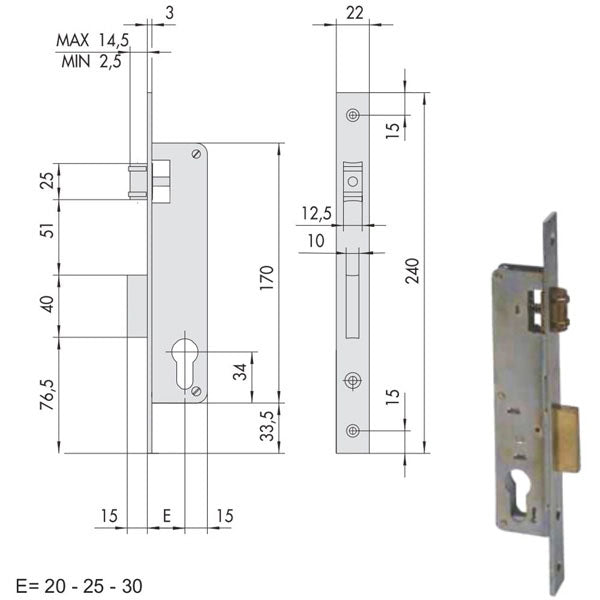 Serratura montanti alluminio infilareFrontale inox - Catenaccio 1 mandataRullo regolabile 2,5/14,0AmbidestraCilindro non inclusoScatola 170 - Frontale 22x240 Per saperne di più