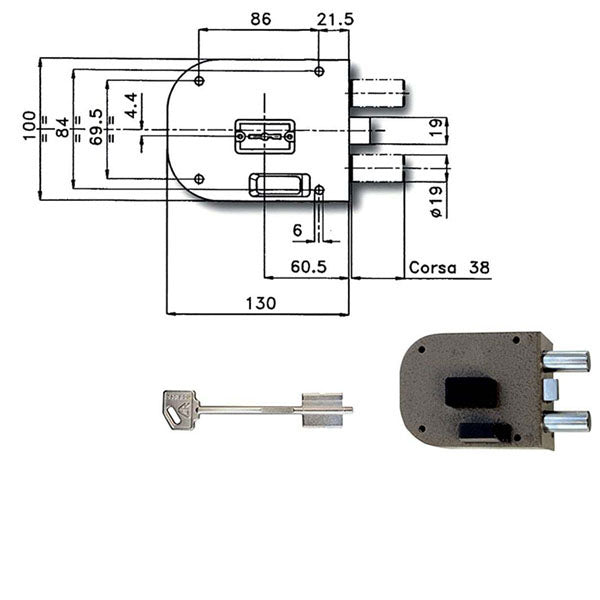 Serratura doppia mappa applicare legnoChiusura laterale Catenacci laterali 2 pistoni e scroccoInterasse catenacci mm 26,5Scatola mm 130x100x50,0 - Entrata mm... Per saperne di più