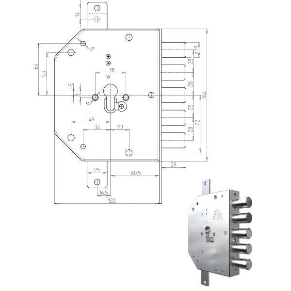 Serratura cilindro europeo a planareMovimento ad ingranaggiTrappola anti effrazione - Fori protettore mm 382 chiusure verticaliCatenacci laterali 3 pistoniInterasse catenacci... Per saperne di più