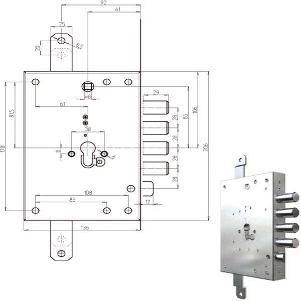 Serratura cilindro europeo a planareMovimento ad ingranaggiTrappola anti effrazione - Fori protettore mm 382 chiusure verticaliCatenacci laterali 4 pistoni e... Per saperne di più