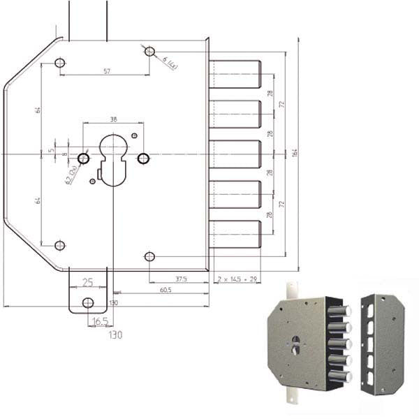 Serratura cilindro europeo applicare legnoTrappola anti effrazione - Fori protettore mm 382 chiusure verticaliCatenacci laterali 5 pistoni Interasse catenacci mm... Per saperne di più