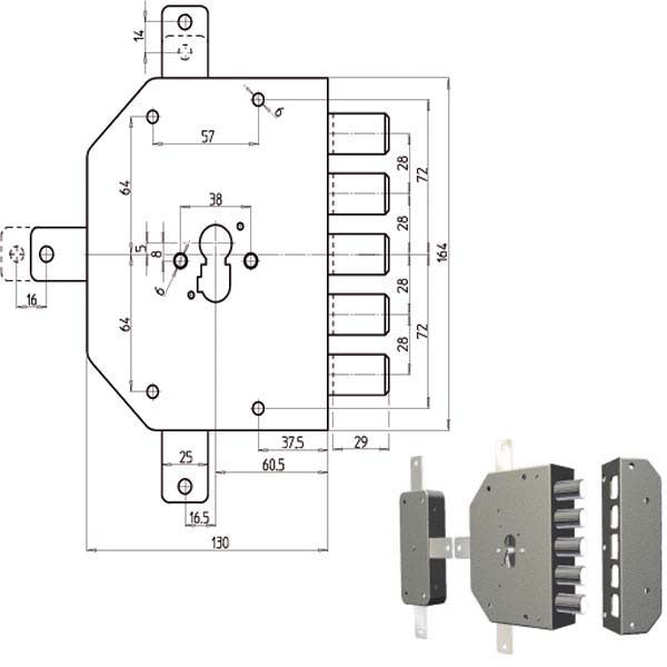 Serratura cilindro europeo applicare legnoTrappola anti effrazione - Fori protettore mm 384 chiusure verticali Catenacci laterali 5 pistoni Interasse catenacci... Per saperne di più
