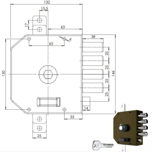 Serratura pompa applicare legno2 chiusure verticali - Pomolo internoCatenacci laterali 4 pistoni e scroccoInterasse catenacci mm 25Scatola mm 130x132x49,5 -... Per saperne di più