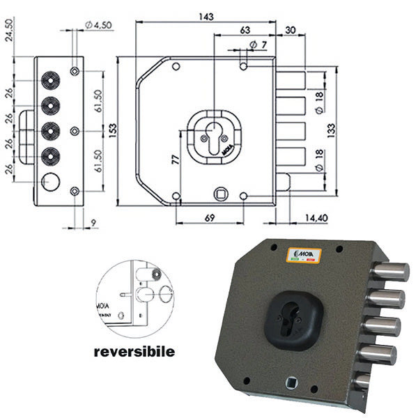 Serratura cilindro europeo applicare legnoTrappola anti effrazione - Fori protettore mm 38 Chiusura laterale Catenacci laterali 4 pistoni e scrocco... Per saperne di più