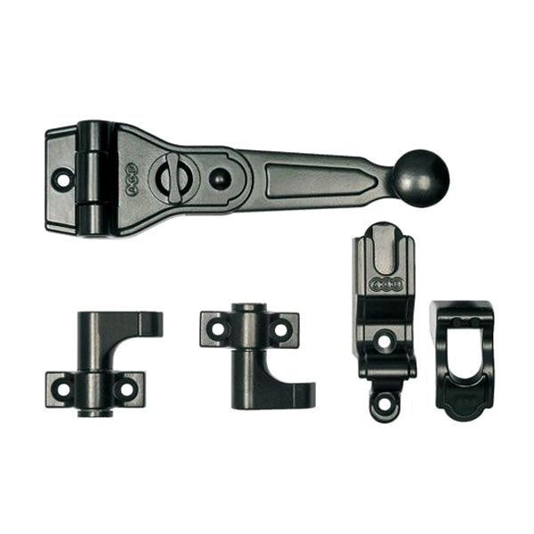 Zama finitura neraDotazione:spagnoletta mm 65,5+75x44fermo maniglia mm 77,5x22ganci chiusura DX/SX mm 38,6x37Adatto per imposte 1 o 2 ante Per saperne di più