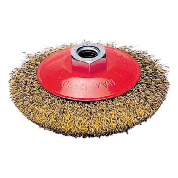 Spazzola conica con foro filettato MA14 FFili acciaio ottonato ondulato mm 0,30Diametro mm 100/125 Per saperne di più
