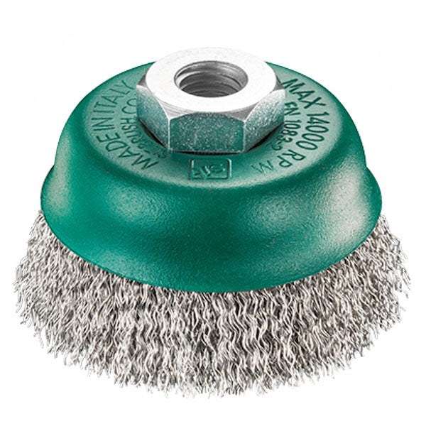 Spazzola a tazza con foro filettato MA14 FFili acciaio inox ondulati mm 0,30Diametro mm 80Altezza fili mm 25Adatta per preparazione... Per saperne di più